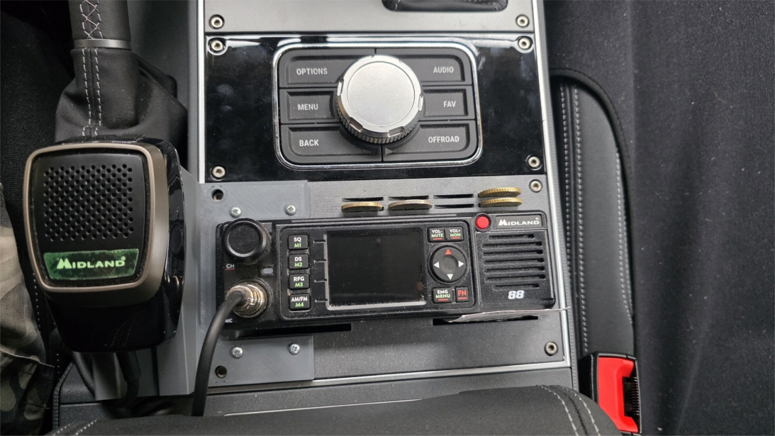I chose the Midland M88 which is really very compact. Unfortunately, it is necessary to remove the stock cup holder panel, which may be a problem for some. But the place is perfect - the radio is at hand and the microphone too. All you need to do is unscrew the cup holder panel and mount panel for radio.