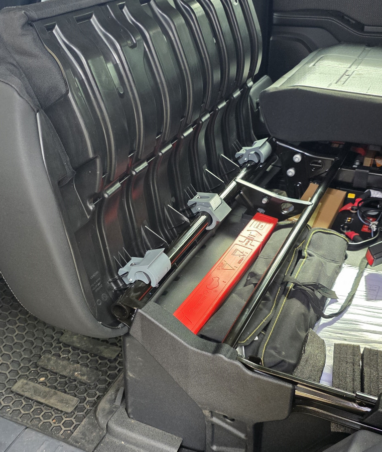 Do this for all mounts. Slide the seat onto the bar and press lightly to seat it. In order for the quick release latch to engage properly when closing, you will need to place the seat in a vertical position.