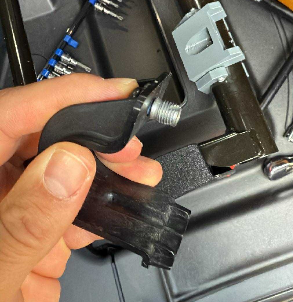 It's so simple: Remove the original bracket by unscrewing the screw. It can happen that you also unscrew the slave. This must be put back in place. Slide the quick release bracket into the free space and screw it in.