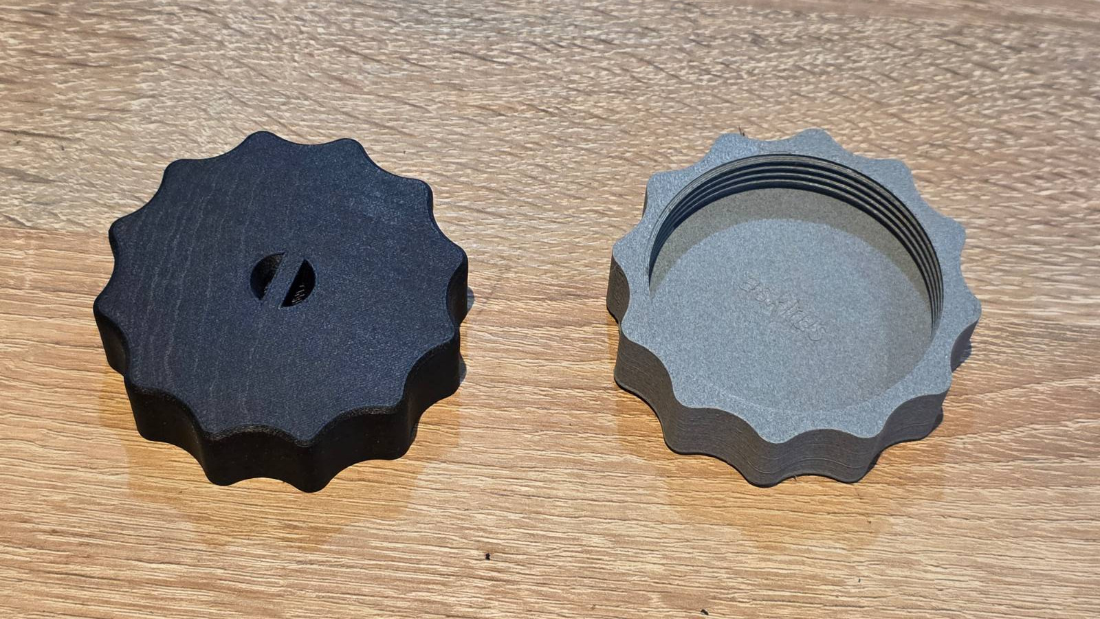 The cap comes with a gasket. Body in light gray or black. Please specify when ordering.